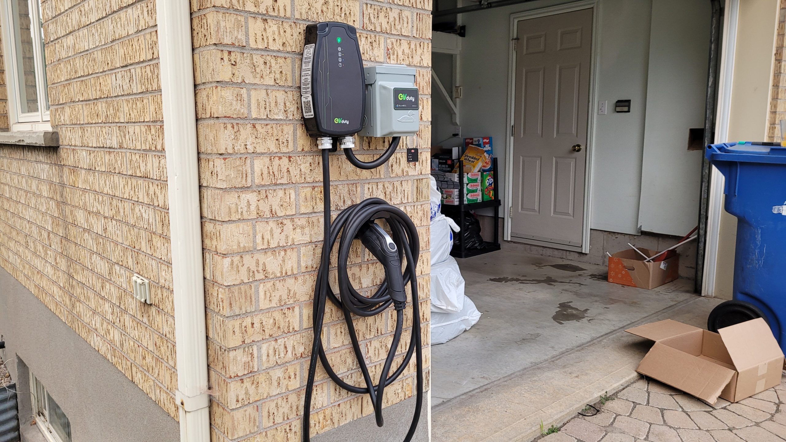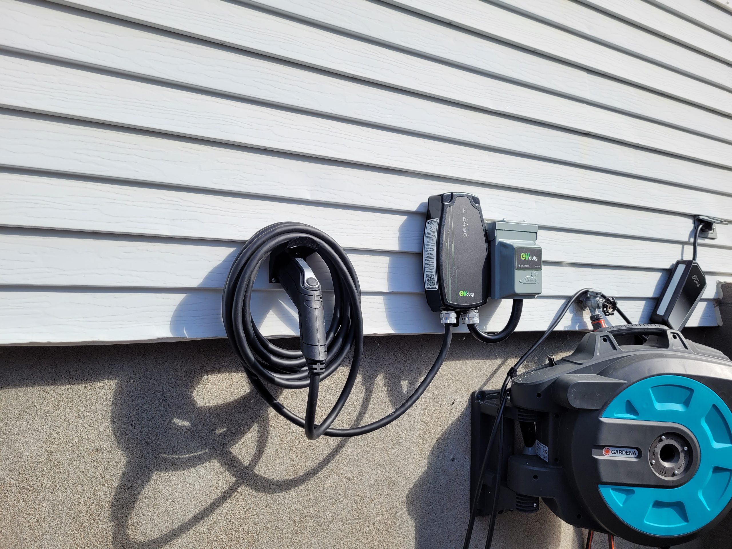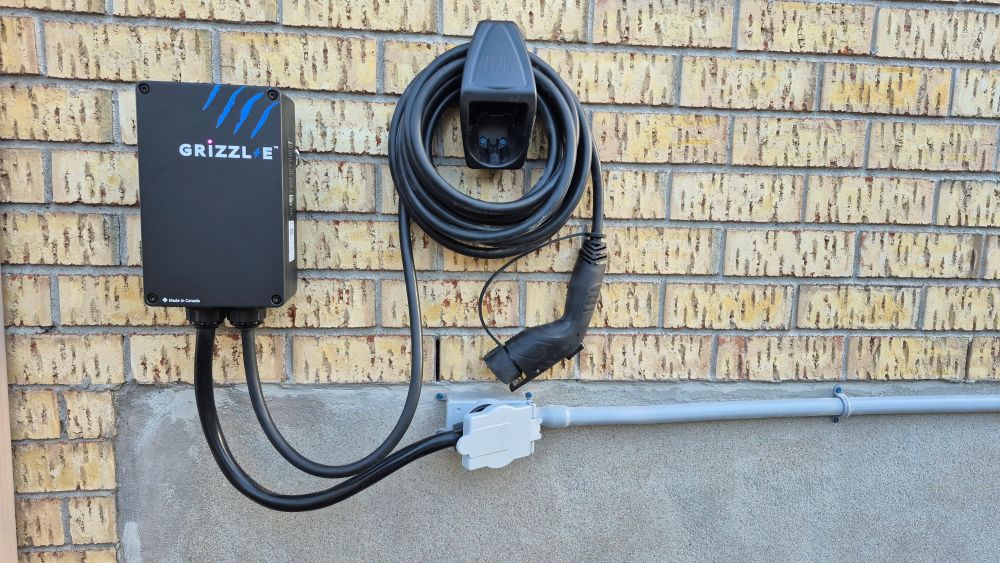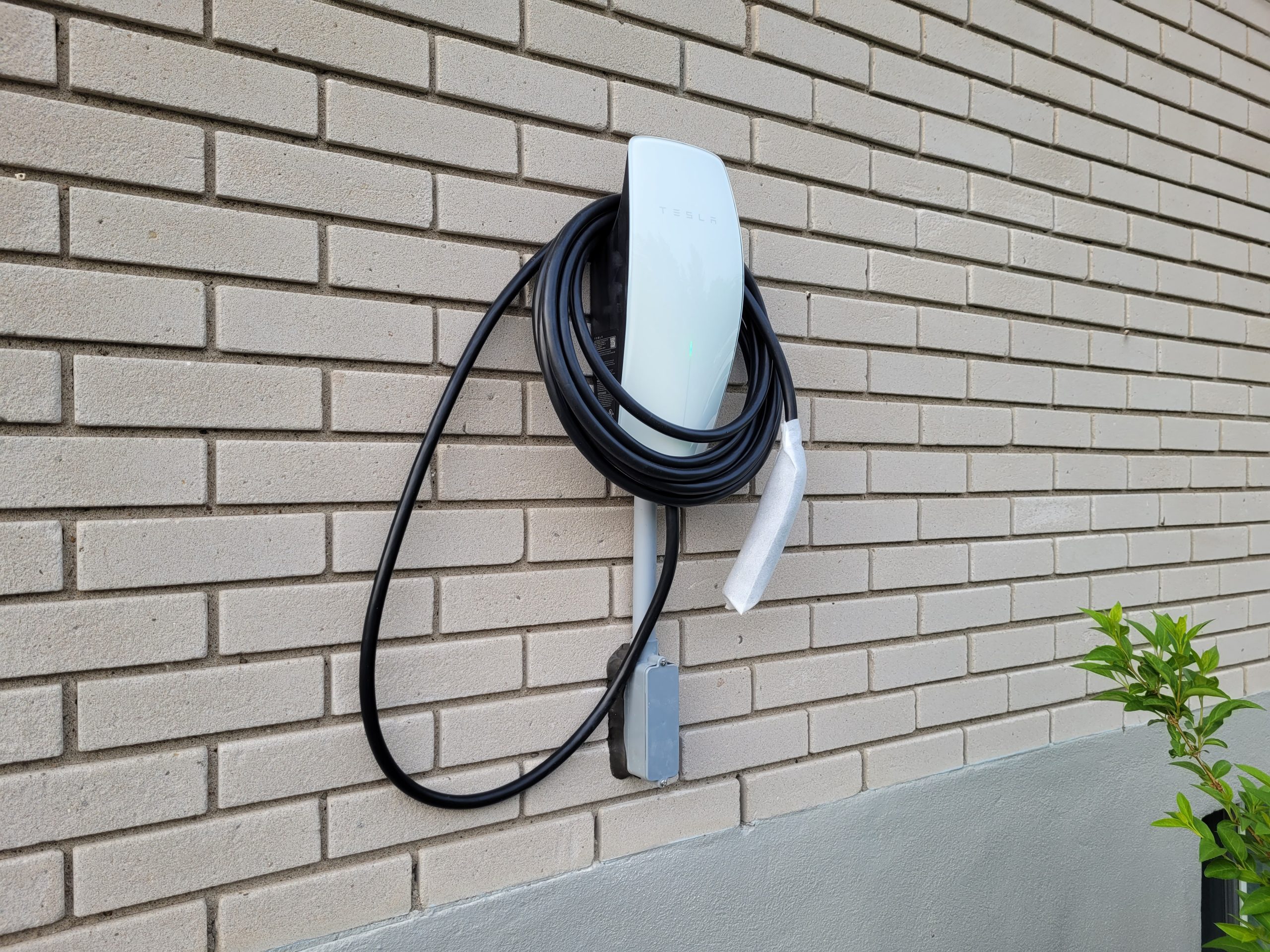 Bornes de recharge de niveau 2 de modèles divers tels que EV Duty, Flo, Tesla, TechnoVE, Grizzl-E, Siemens et Bosch avec raccordement permanent ou avec prise de courant NEMA 6-50R ou 14-50R. Installations avec contrôleur de charge dans le contexte d'un immeuble en copropriété divise.